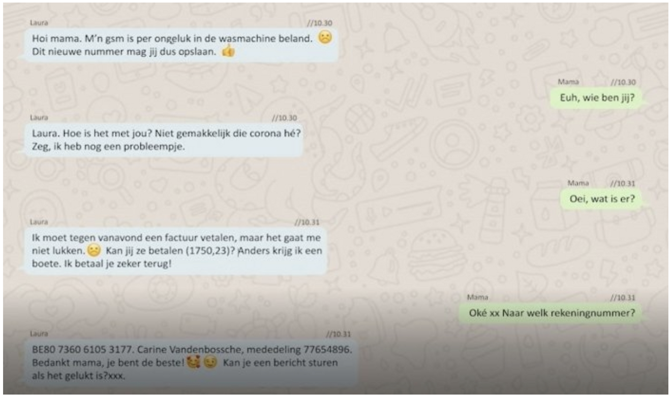 Bij hulpvraagfraude word je benaderd door een onbekend nummer via instant messaging apps als WhatsApp of Facebook Messenger. De oplichter doet alsof hij een goede vriend of familielid is, en vertelt je dat dit het nieuwe gsm-nummer is van deze persoon.
