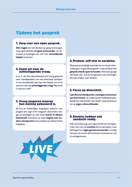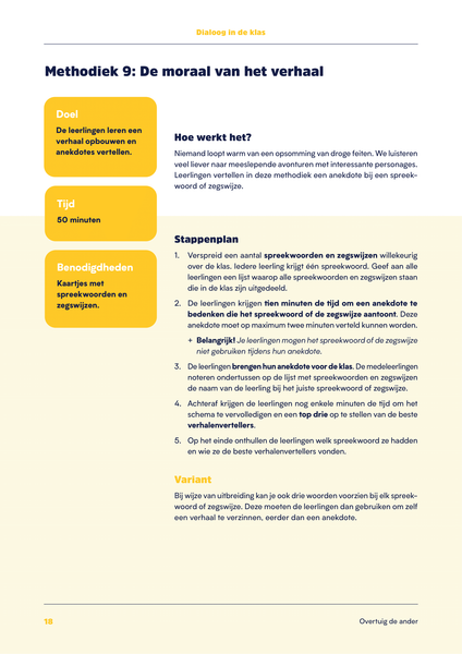 Jongeren leren communiceren is een essentieel onderdeel van het klasgebeuren. Toch is het als leerkracht niet altijd gemakkelijk de dialoog op gang te brengen in de klas. Deze bundel met gespreksmethodieken geeft leerkrachten handvaten en ondersteunt hen om op verschillende manieren in te zetten op de ontwikkeling van gespreksvaardigheden.