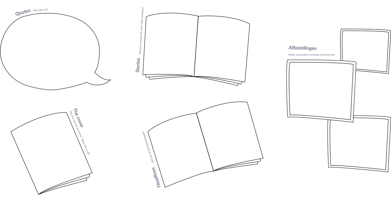- 3 methoden die gebruikt worden voor het prototypen van zowel offline als digitale dienstverlening: storyboards, magazine covers en product boxen.