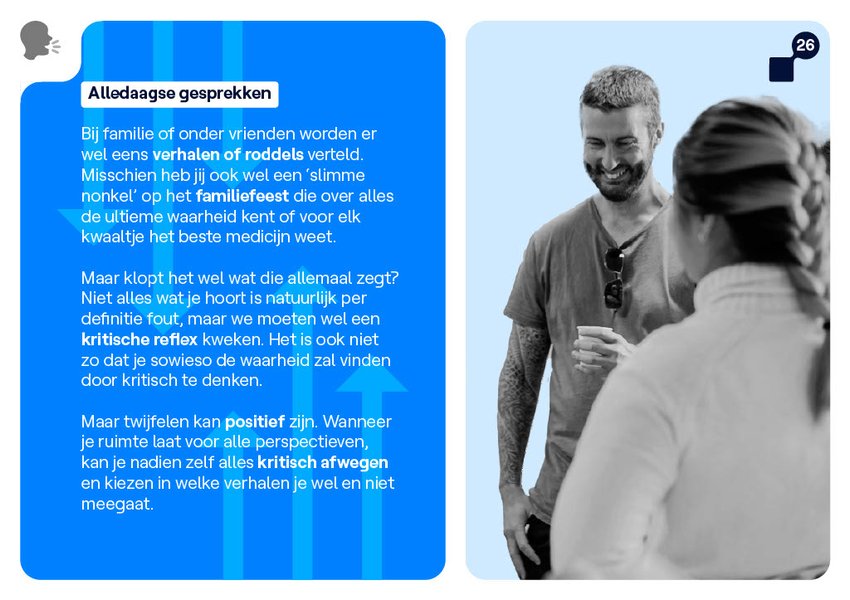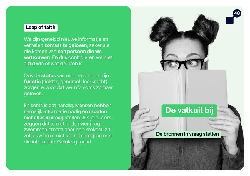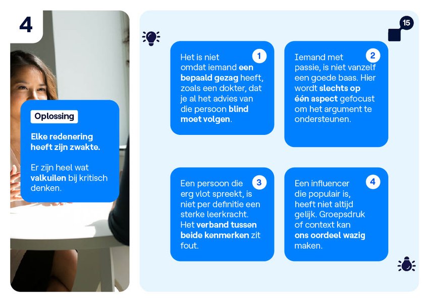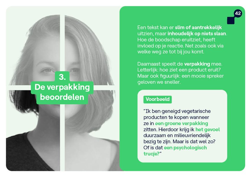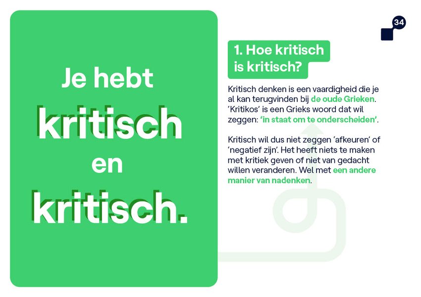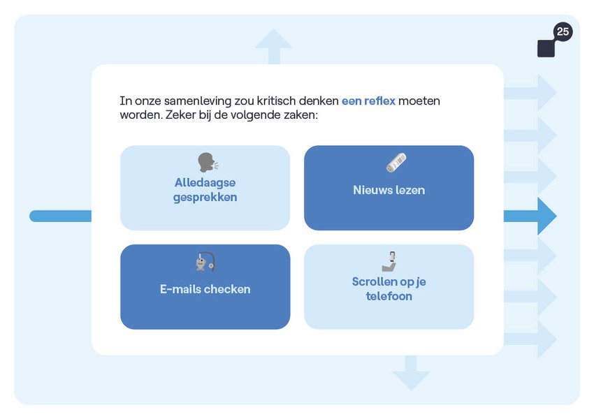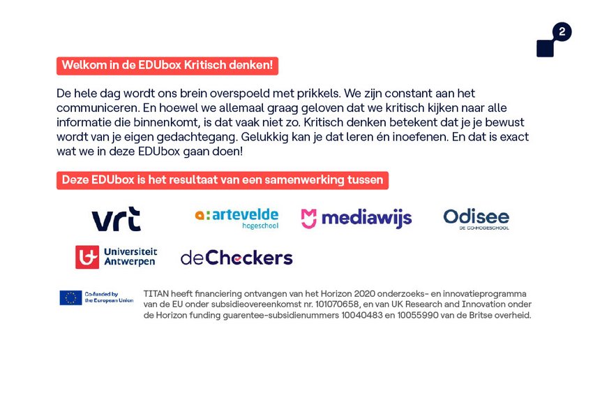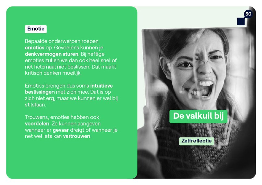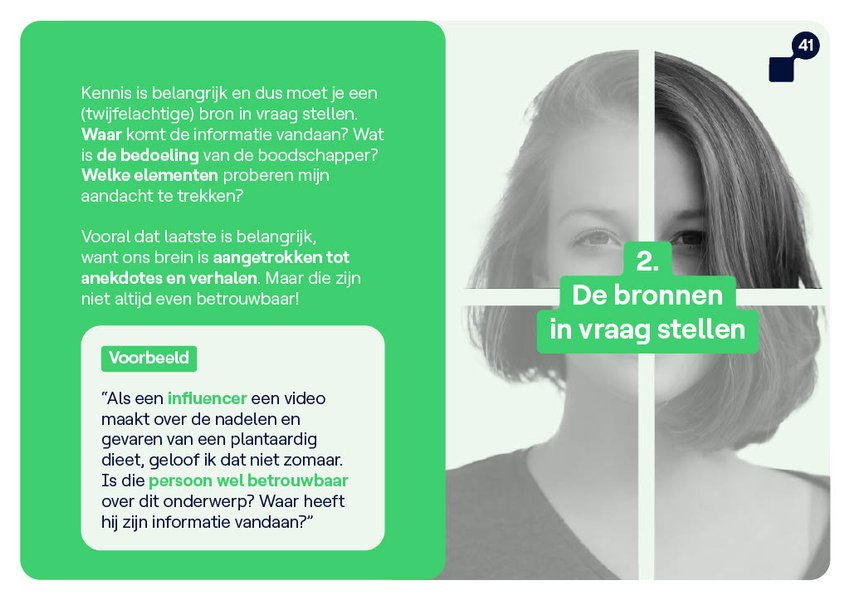 In de EDUbox Kritisch denken ontdekken jongeren wat kritisch denken precies inhoudt, hoe hun brein informatie verwerkt en met welke strategieën ze nieuwe informatie kritisch kunnen beoordelen.