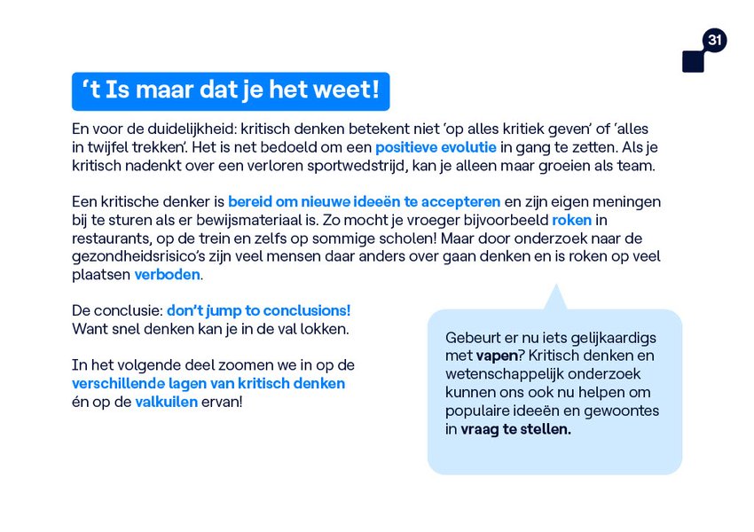 - een introductie over de werking van het brein en het belang van kritisch denken